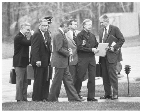 Casting himself as an “outsider” while running for the presidential campaign in 1976, everybody knew James Earl Carter was going to be different from the previous “powerful” presidents of the Cold War Era. Once elected, Carter stated “he would have no ‘all powerful guard palace’ in the White House, the cabinet system would be restored to prominence in the government, and his staff would have free access to him and would be encouraged to tell him when he was wrong.”2 This statement by Carter would be the basis of what ultimately decided the Carter Administration’s foreign policy. Glad distinguishes two of Carter’s most influential cabinet members in the foreign policy team, Zbigniew Brzezinski and Cyrus Vance, as very different from each other. Vance was always careful and would use diplomacy to negotiate with others, while on the contrary Brzezinski had a hawkish attitude towards the Soviets and always seemed to be on the hunt for power. Vance’s traits helped Carter in achieving two of the major successes in foreign policy, while Brzezinski would contribute to the aggressive attitude and failures in foreign policy by making decisions on his own without the president’s consent and by gaining an influence on the president. Brzezinski was able to continue these actions throughout the most of the Carter presidency, and as a result would influence many of the president’s foreign policy decisions. Glad also deciphers Carter’s original intentions for his term, which included an agreement with the Soviet Union to reduce the production of nuclear arms, promoting human rights overseas, addressing the energy crisis, and enforcing environmental protection laws. An early commitment to one of these goals was the negotiations held to ratify the Strategic Arms Limitation Treaty (SALT II) to reduce nuclear arms with the Soviet Union. This became a part time failure due to the crisis in the Horn of Africa where Cuban troops were sent into Ethiopia by the Soviet Union and also due to the Soviet Union’s refusal to integrate human rights into their system. Brzezinski’s influence would cause Carter to abandon these goals later on.